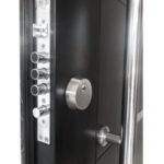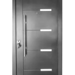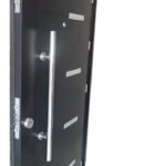 Puerta BLINDADA de Máxima Seguridad calidad de 960mm X 2050mm x 70mm, con barral de acero y detalles en aluminio en el frente. Cerradura de alta precisión multianclaje con 9 pernos de acero. 4 Bisagras ocultas “antibarreta”